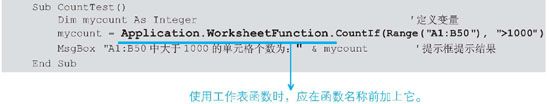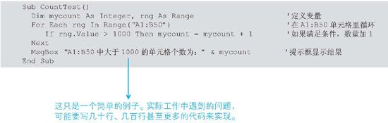 如想统计A1:B50单元格中数值大于1000的单元格有多少个,就没有现成的函数,需要编写Function或Sub过程来统计。