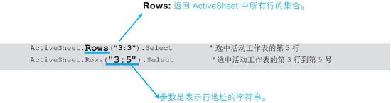 如果引用的是Range对象的Rows属性,则返回单元格区域里的指定行,如图4-35所示。