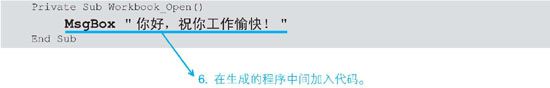 “当打开工作簿的时候自动运行程序。”这是Workbook_Open事件控制程序的规则,于是,每次打开工作簿时,都会自动运行这个程序。