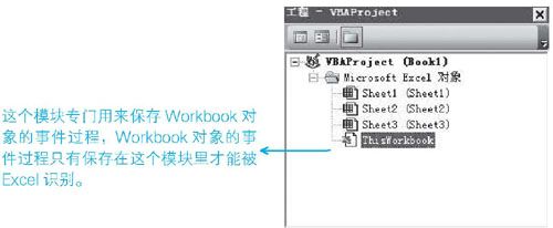 5.3.1 关于Workbook事件Workbook事件是发生在Workbook对象里的事件。 进入VBE,在【工程资源管理器】中可以看到ThisWorkbook模块,如图5-11所示。 图5-11 ThisWorkbook模块 5.3.2 常用的Workbook事件 Open事件Workbook_Open事件告诉Excel,当打开工作簿时自动运行程序。
