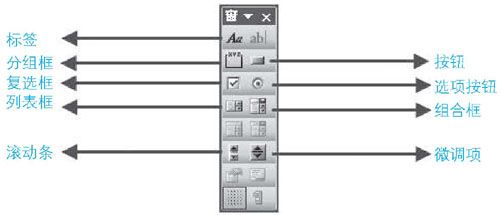 【窗体】工具栏中一共有16个控件,其中有9个可以添加到工作表中,如图6-2所示,控件说明见表6-1所示。