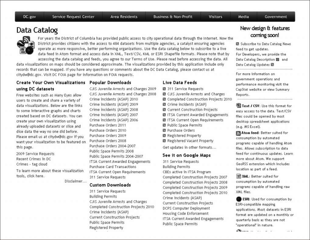 截至2011年12月,仅仅在Data.Gov网站上,就汇集了1140个应用程序和软件工具、85个手机应用插件。其中,有近300个是由民间的程序员、公益组织等社会力量自发开发的。