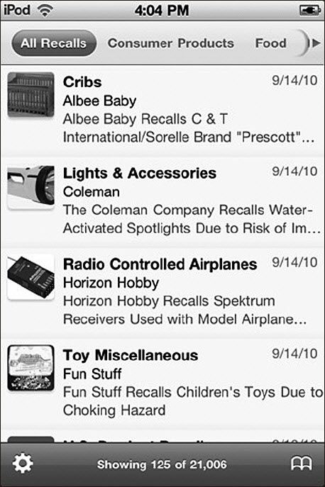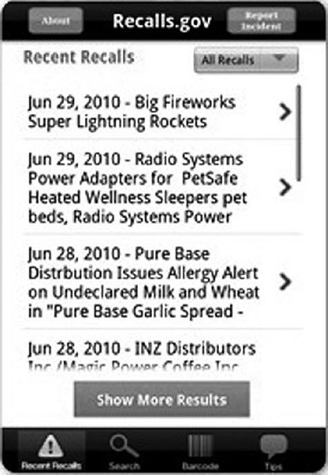 Data.gov开放数据之后,一款基于苹果手机的新应用RecallsTM很快就被开发出来,并对全社会免费开放使用。和联邦政府开发的系统相比,该系统的功能更强大、使用更方便、界面也更绚丽,受到了消费者的莫大欢迎。