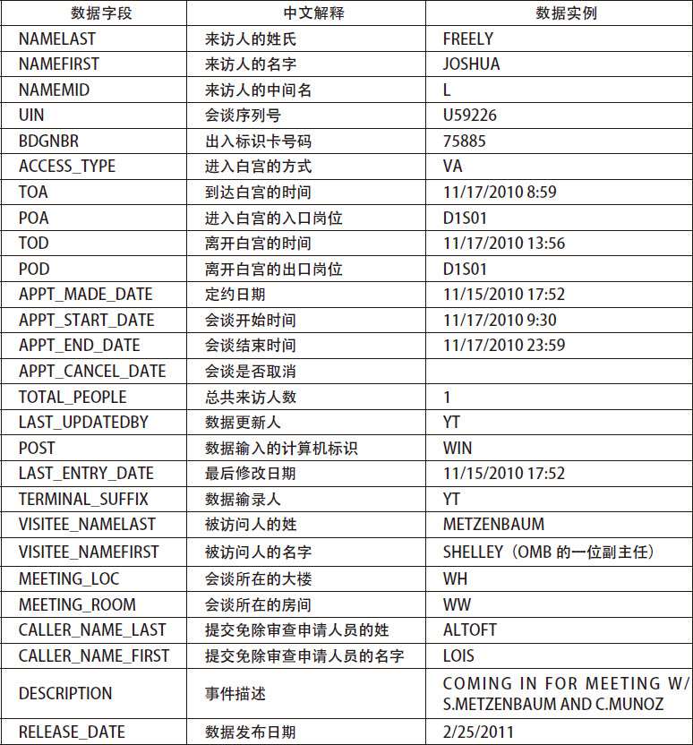 白宫公开的“白宫访客记录”数据字段说明和实例