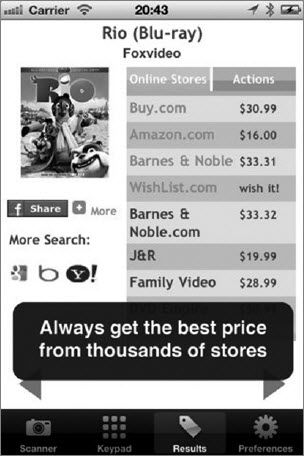 图为Pic2shop的手机界面:显示同一个DVD在不同商家的价格。