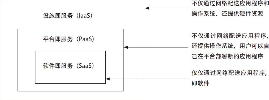 说明:三种模式分别对应应用软件、操作系统和硬件,服务范围层层扩大。SaaS、PaaS和IaaS分别代表Software as a Service,Platform as a Service和Infrastructure as a Service。