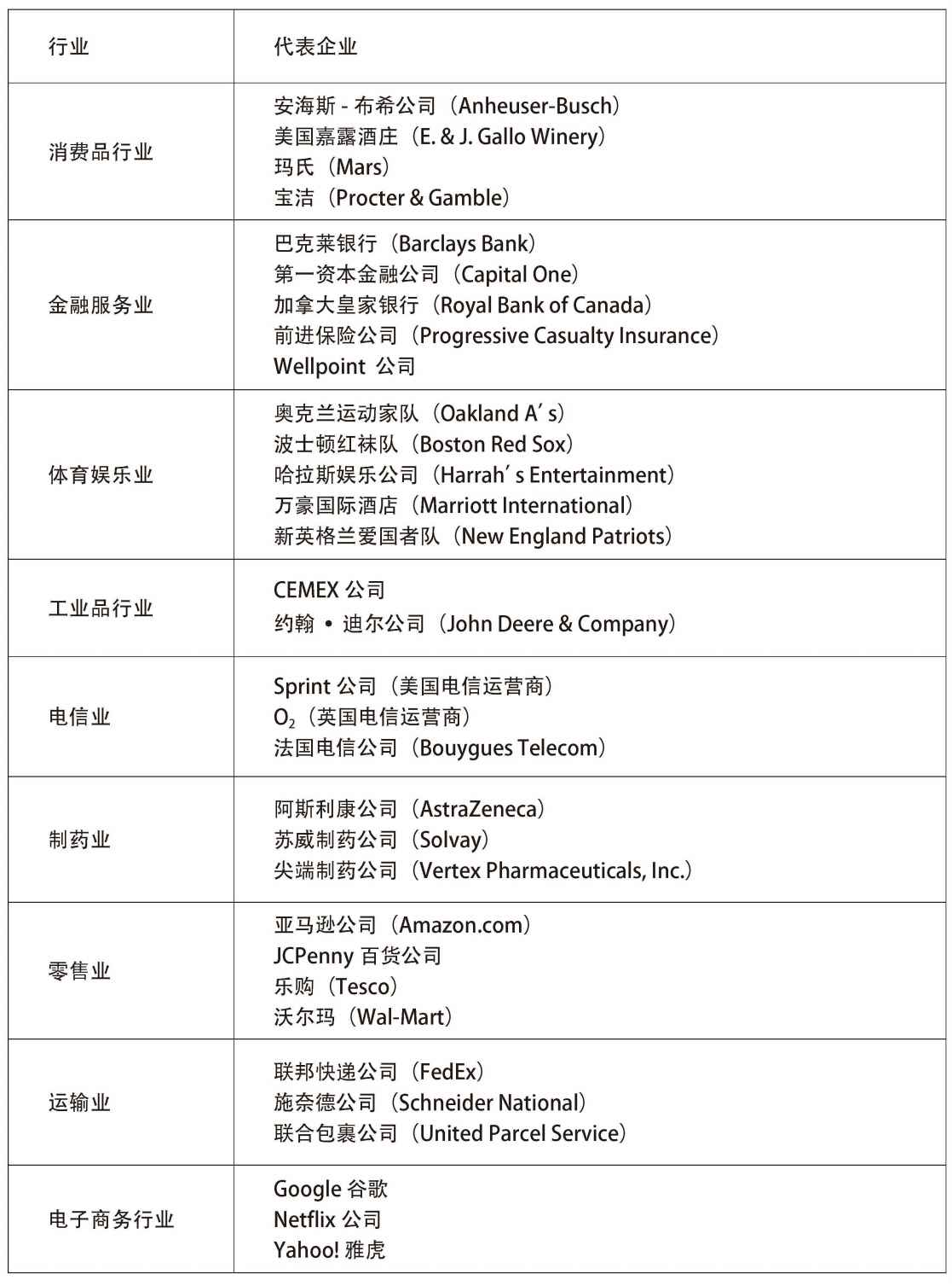 达文波特对美国的多个行业进行了考察,发现各个行业都出现了以数据分析为竞争形式的企业。这些企业当中,既有网络时代的新秀,如谷歌,也有经营了百年的品牌,如宝洁。它们都在数据分析的基础之上与其他企业展开竞争,同时又都是行业中的佼佼者。达文波特还相信,这两个特点是相互联系的,也就是说,正是因为这些公司大规模地采用了数据分析的方法,他们才成为行业中的领先者。