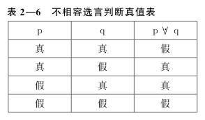q”在p为真q为假或p为假q为真时,是真的;在p和q均为真或p和q均为假时,是假的。该判断的真假情况可直观地反映在真值表中(见表2—6):