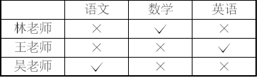 (二)根据条件(1),从上表中可以看吴老师教语文,王老师教英语,林老师教数学。