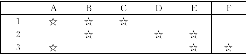 根据题意,先画出表格,并在相应的空格里画上记号“☆”。如下图所示: