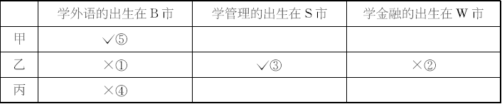 又由“学习外语的出生在B市”,可推出学习金融的出生在W市,继而推出学习管理的出生在S市。