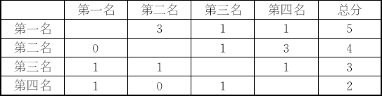 (2)若总分为14分,则6场比赛产生的分数为3、3、2、2、2、2。根据四个队分数分别为2、3、4、5,可列出下表: