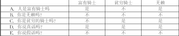 C项中对“你是贫穷的骑士吗”这个问题,无赖和贫穷的骑士都回答“是”。