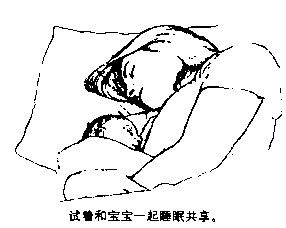 5.和宝宝一起睡只要你开始带孩子,你就会发现,那种能一觉睡到天亮的宝宝只在书里有,要不就是在别人家里,总之你自己的宝宝不会是这样的。要做好准备,夜里会翻来覆去,直到找到你和宝宝都睡得好的位置。有些宝宝在婴儿房里睡得好,有些爱睡在父母的房间里,还有些则要紧紧地贴着母亲才能安睡。不管睡在哪里,只要你和宝宝都睡得好,就是正确的安排,而且这完全是你个人的决定。你可以尝试各种睡觉的方式,包括让孩子睡在你的床上——我们将这种夜间育儿方式称为睡眠共享。