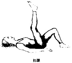 膝盖碰胸目的:加强后腰部和臀部肌肉。做法:以仰卧的骨盆抬起动作作为开头,慢慢地将一条腿的膝盖抬至胸部,用手抓住膝盖,轻轻地往胸部拉。保持5秒钟,随后放松。每条腿做1〇次。再次将一条腿的膝盖抬至胸部,这次当抵住胸部时,另一条腿伸直放平。持续几秒钟,然后回到起始动作。每条腿重复10次。最后进展到双膝碰胸:慢慢地先将一个膝盖拉向胸部,接着另一边。用手将两膝拉至胸前。持续5秒钟,然后放松,慢慢放下一条腿,然后另一条。重复10次。