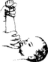 用橄榄球式抱姿把宝宝抱在怀里(见第130页图示)。用海绵挤一点温水在宝宝头上,滴一点婴儿洗发香波,轻轻地按摩整个头部。不用特别留心囟门部位,它的下面已经相当硬了。(假如宝宝的头皮上有薄薄的成片的东西,或者硬壳样的东西,见第108页对“摇篮帽”的处理。)用流动水冲洗,然后用连帽毛巾擦干。宝宝要~直裹在毛巾里,只有头和脸露在外面,以免着凉。接下来擦洗身体其他部位时,用连帽毛巾盖上头部。