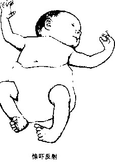 惊吓反射。如果宝宝突然被放到一个嘈杂的环境中,或你在抱着他的时候突然放开对宝宝头部或背部的支撑,这时宝宝感觉自己要往下掉了,就会迅速地张开双臂,手好像要抓住或抱住什么似的。特别是在无人可以依靠或安慰的情况下,这种反射还会