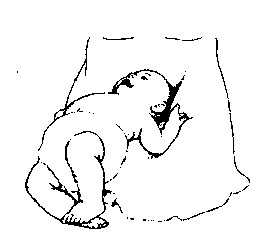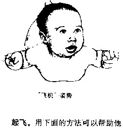 平躺在床上时,把他的头转向一边,注意看他一侧的胳膊和腿会往外伸,而另一侧的胳膊和腿向里缩,好像击剑运动员的预备姿势。这种反射对宝宝的肌肉发育有利也有弊。它使宝宝看着他前方的那只手,把注意力集中在那只手里的玩具上。但它又阻止宝宝在他身体的正前方使用他的胳膊.手和头部。大概在三四个月时,这种反射开始减弱,宝宝就可以把玩具拿到面前玩了。