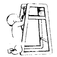 门后面是什么?婴儿活跃的记忆力现在能记得门背后的东西。11个月大时,马修有一次坐在打开的橱柜门前,发现了他感兴趣的罐子和锅,他把这些东西拿出来,敲得叮当响。(幸好宝宝游戏的时间不长,否则人们的耳朵要受苦了。)马修玩够了之后,我们拿走罐子和锅,关上门。从那以后,马修记住了门背后的玩具,每天都会爬到柜子前面来,试图打开门。