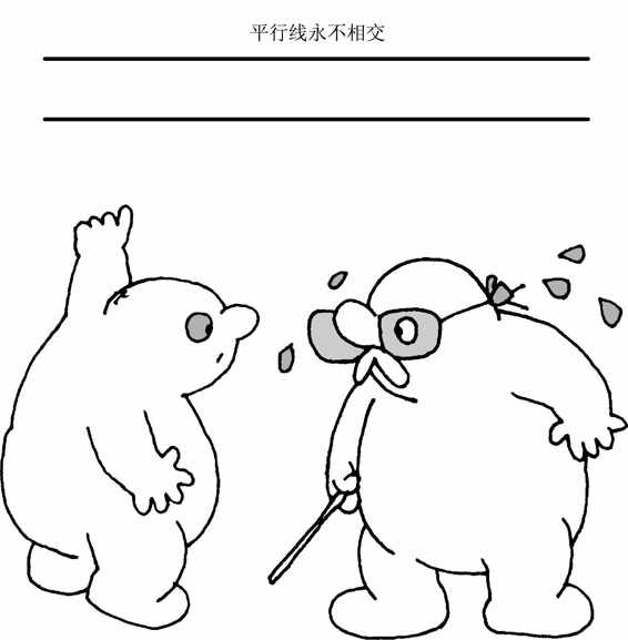 “老师,请您把这两条平行线无限长地画下去,我想看看它们是否真的不相交。”