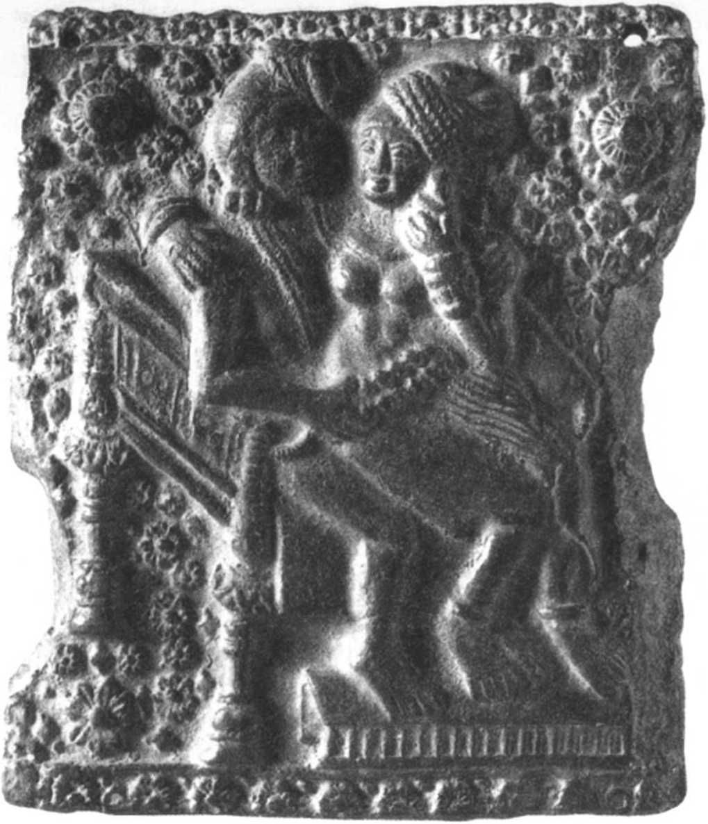 这是在印度发现的公元前2世纪陶饰板,画面5反映的是两个恋人的性爱场景。