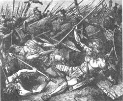 彼得那战役。公元前168年6月22日,统治希腊的马其顿安提柯王朝在彼得那战役中战败,国王向罗马统帅保卢斯投降,第三次马其顿战争结束。从此希腊就处于罗马的控制之下了。罗马虽然用武力征服了希腊,但希腊却用文化征服了罗马