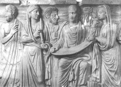 讲学的普罗提诺。普罗提诺(204—270年),最著名的新柏拉图主义哲学家,被誉为新柏拉图主义之父。他虽然不是基督徒,但其哲学却对当时的基督教的教父哲学产生了极大影响