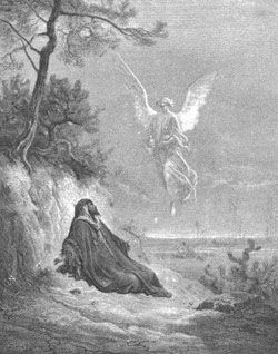 以诺与天使。以诺是亚当的子孙,诺亚的曾祖父。他在地上住了365年后,神就将他接上了天堂。根据《圣经》记载,在以诺生活的整个365年中,有300年与神同行。据说是他所著的《以诺书》,就记载了他与神同行这300年中所见的种种异象