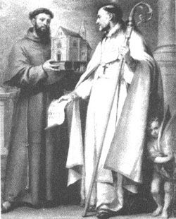 波拿文都拉与塞维利亚大主教立安德。波拿文都拉(约1217—1274年),欧洲中世纪经院哲学家、神学家,曾任方济各会总会长、红衣主教等职。他认为信仰无须用理性来论证,上帝的意志是万物的原因和形式,理性与意志属于灵魂,生长与感觉属于肉体