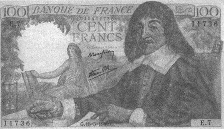1942年法国发行的100法郎纸币正面就印有笛卡尔的形象