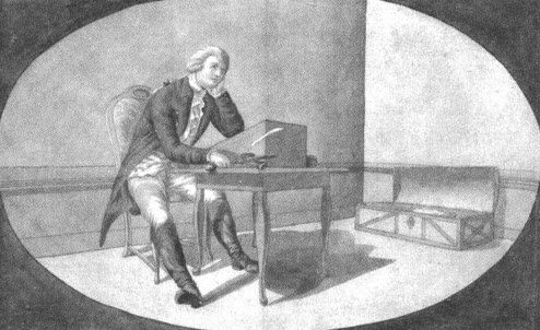 歌德的《少年维特之烦恼》插图。十八世纪六十年代晚期到八十年代早期,德国文学和音乐创作领域掀起了“狂飙突进运动”,这是文艺形式从古典主义向浪漫主义过渡的时期,也可以说是浪漫主义的幼稚时期。代表人物是席勒与歌德,而歌德的《少年维特之烦恼》正是这一时期的典型作品