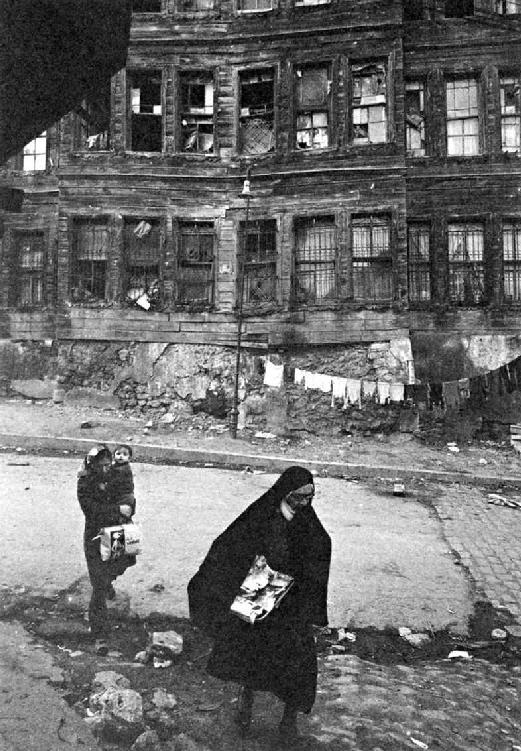 坦皮纳写“漫步于贫民城区”,不仅是描述他自己最近的造访以及从前的漫游。这些漫游的目的不仅让他本身重新认识伊斯坦布尔最贫穷、最偏远的地区,也是试图让自己逐渐适应住在贫穷国家的事实,住在一个在世人眼中不再重要的城市。于是,探索贫民区的风光等于道出伊斯坦布尔和土耳其本身即是贫民区的事实。坦皮纳详细描写我儿时熟悉的烧毁的街道、废墟和塌墙。后来在漫游期间,他听见女人的声音(出于习惯,坦皮纳称之为“来自后宫的叽喳声”)从“一栋尚未分崩离析的阿布杜勒哈米德时代木造大别墅”传来,但为了与他给自己制定的政治文化方案接轨,他不得不说这些不是奥斯曼的声音,而是在城里新兴的家庭手工业——“制袜厂或编织厂”中干活的穷人家妇女发出的声音。坦皮纳在每一页重复“我们大家从小都知道”的句子,他描述住在附近的拉西姆曾在专栏中提及“葡萄棚架成荫的喷泉,在阳光中晾干的衣服,猫狗相伴,小清真寺与墓园”。坦皮纳最先在奈瓦尔和戈蒂耶关于贫民区、废墟、破旧的住宅区所作的精辟观察中发现忧伤,于是将之转化为本土的“呼愁”,通过它去领略当地的景致,特别是现代职业妇女的日常生活。