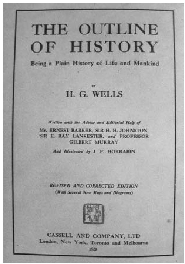 威尔斯(H.G.Wells)撰写《世界通史》(The Outline of History)书影。傅斯年到英国的第一年,曾帮助威尔斯撰写该书中有关中国中古史的部分。该书于1920年出版后,洛阳纸贵,12年内卖出150万本之多(王汎森提供并解说)