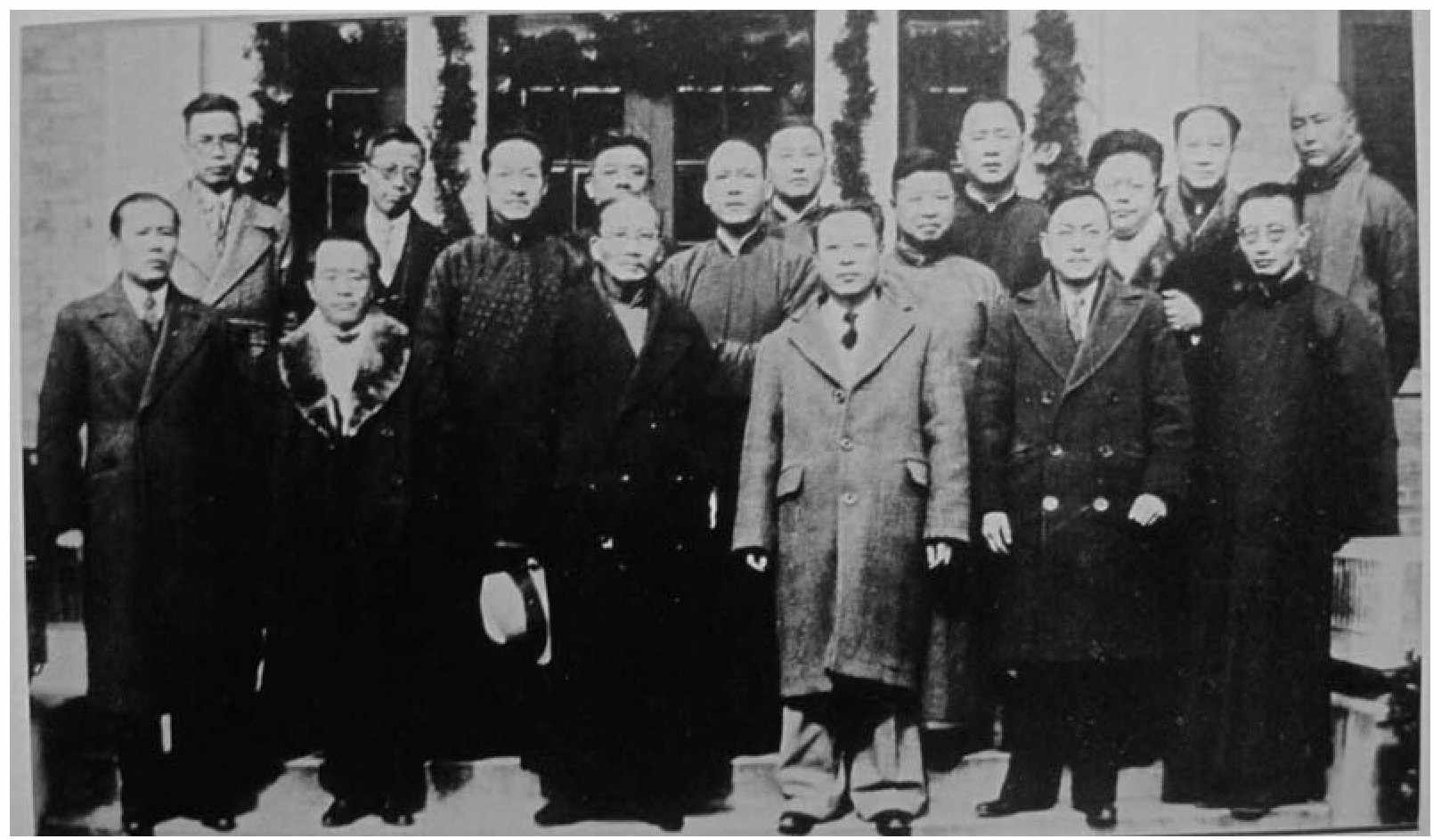 1936年1月28日,傅斯年移家南京、告别北平北海静心斋时所摄。左二为傅斯年,左三为陈寅恪