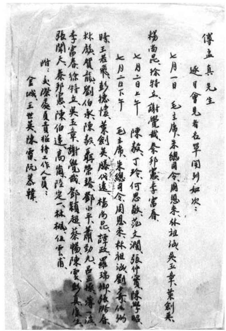 六参政员访延安时毛泽东所发之请柬