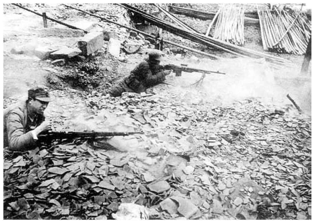 常德会战现场,国民党军队拼命抵御日军大举进攻,整个城市建筑物被摧毁大半,变成一片瓦砾