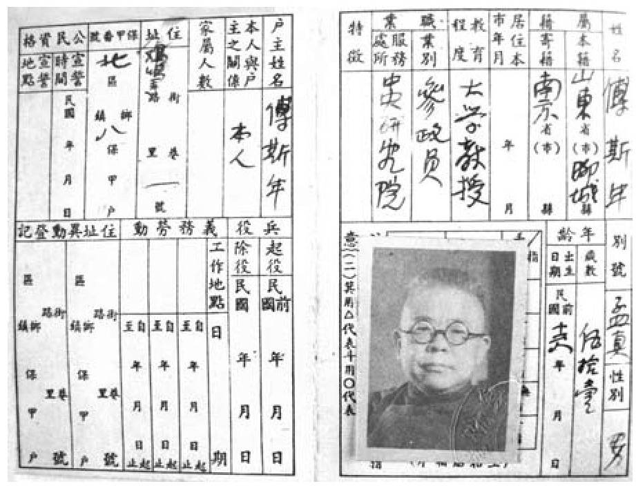 傅斯年的参政员证。1937年七七事变起,南京政府成立了国防参议会,傅斯年应邀参与。次年7月起,开始担任国民参政会参政员,直到抗战胜利止。(台湾“中研院”副院长王汎森提供)
