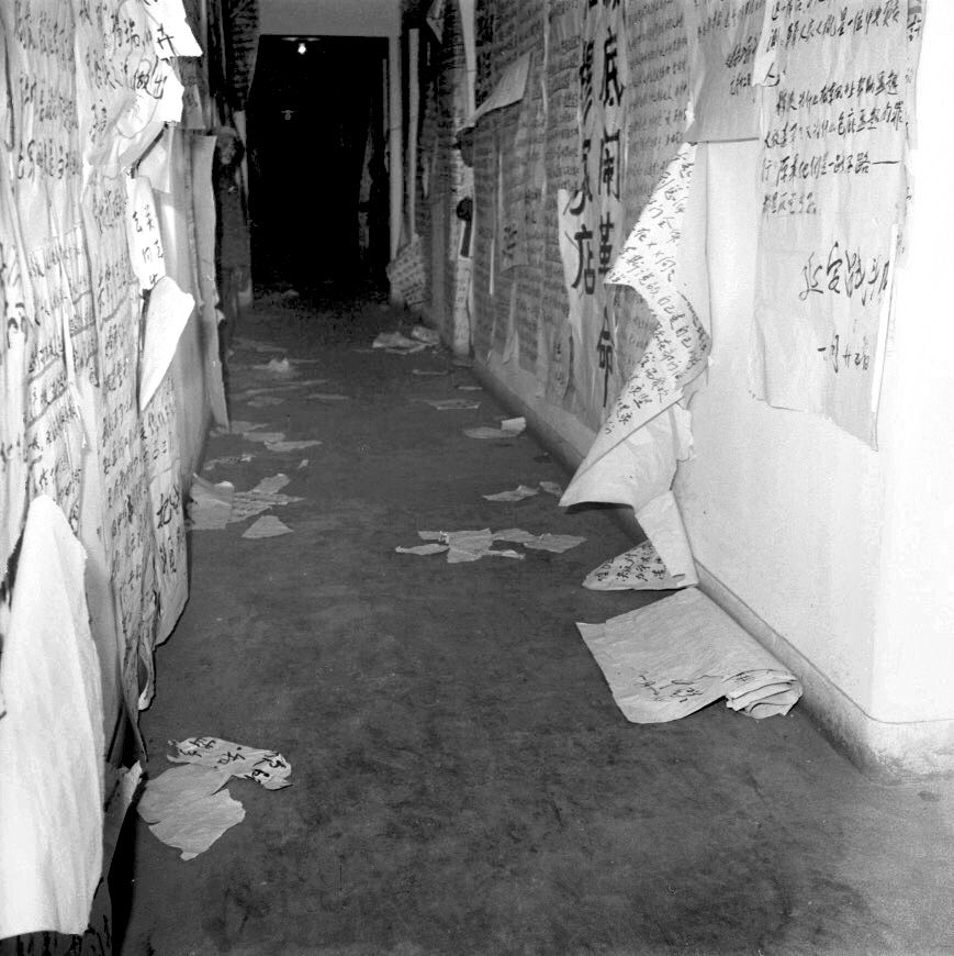 我自知出身不好,不敢多看,赶紧骑车回家。快到家时,几个年轻人坐在边道沿子上,可能是街坊家的孩子们,一个冲我说:“神气什么,到家门口看看去吧。”我没答话,往家里骑,很快就看到夜色中的家门口白花花一片,是大字报!我立刻紧张起来。